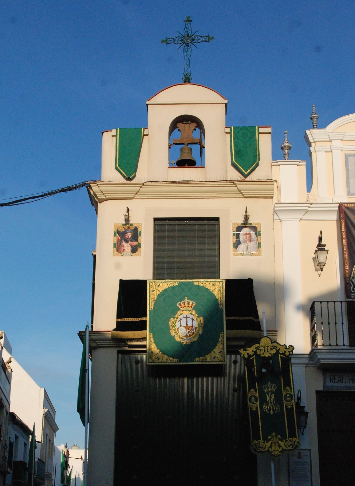 Quien ahora pase por la calle Real de Castilla queriendo observar el viejo caserón sin valor artístico del s. XVIII contemplará en este mismo lugar un gran edificio coronado por una espadaña con cuatro campanas. Su fachada, armoniosamente adornada de balconada, óculos vidriados y artísticos retablos cerámicos de Nuestros Titulares encuadrados en piedra, contiene un amplio arco que, tras dar paso a un acogedor compás, franquea la entrada a todo el volumen interior del edificio Vera-Cruz. Por detrás, en el lugar antes ocupado por los corrales y las cuadras, se alza como edificio anejo a éste el de la Residencia Asistida para Mayores Virgen de las Angustias.