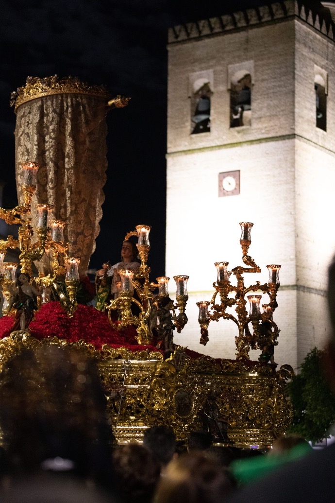 La canastilla adopta un conjunto de cuatro cartelas centrales y cuatro esquineras. En cuanto a los respiraderos, siguen la línea de la canastilla y acogen, igualmente, cuatro cartelas centrales y cuatro esquinas. Todo el conjunto de los respiraderos lo circundav, rematándolo en su parte superior, una cenefa profusamente tallada y calada, que le otorga un gran dinamismo. Posee, además, cuatro maniguetas caladas que enlazan con la obra dándole un toque exquisito a su conjunto.