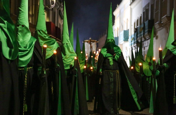 En nuestra Regla 62ª se indica que "El hábito de nuestra Hermandad es la túnica negra con botonaduras y bocamangas verdes, con ribetes del mismo color verde a lo largo de la botonadura. Sobre la túnica se colocará una capa de color negro anudada al cuello por lazo de color verde. Gola en el cuello de color blanco cosida sobre lazo de color verde. La cara irá cubierta de antifaz del mismo color verde y alrededor de la cintura se colocará un cordón amarillo y verde anudado a la izquierda para recoger la túnica. Los zapatos y calcetines serán de color negro. Sobre la capa, en el hombro izquierdo, deberá colocarse el escudo de la Hermandad, que deberá ajustarse a la descripción que de este se hace en la Regla 7 de las presentes Reglas".