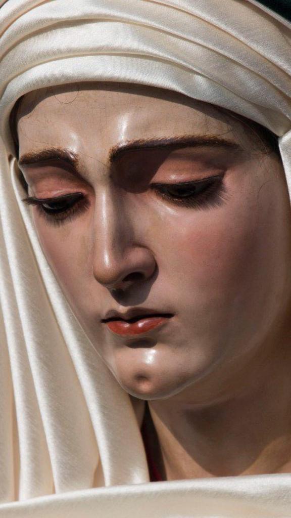 Su cabeza se mantiene ligeramente inclinada hacia delante, como acomodándose a la mirada de quien está orando a sus pies, sin inclinación a ningún lado. Alguien se atrevió a definirla como "la angustia misma plasmada en la madera".