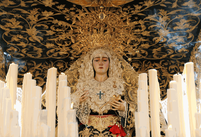 La belleza de la Stma. Virgen de las Angustias se convierte en bálsamo para el dolor de sus hijos cuando en noviembre viste de negro luto, haciendo que el espíritu del crucero se consuele ante su radiante Luz Mediadora.