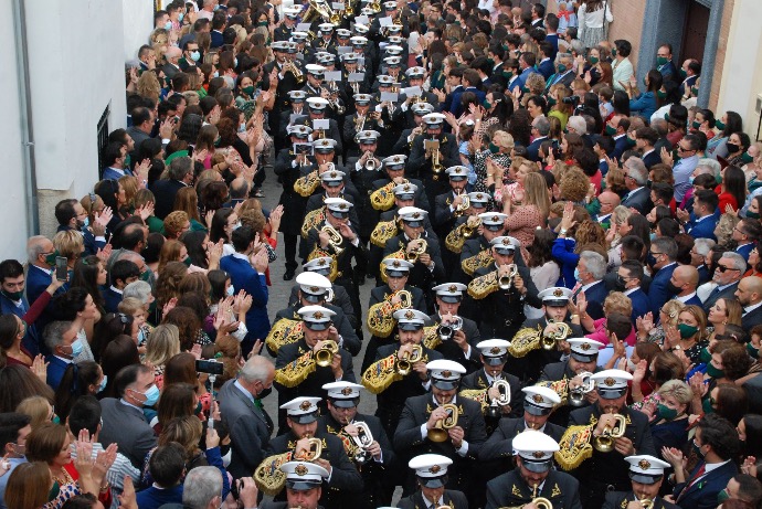 Durante el Día de la Cruz, nos brinda con sus sones la Oliva, de Salteras, y la querida banda del Maestro Tejera.